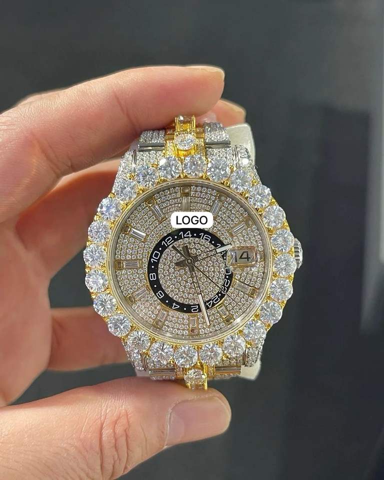 Montre pour homme Hip Hop de luxe avec logo personnalisé VVS Clarity Moissanite Diamond Acier inoxydable antique glacé de haute qualité
