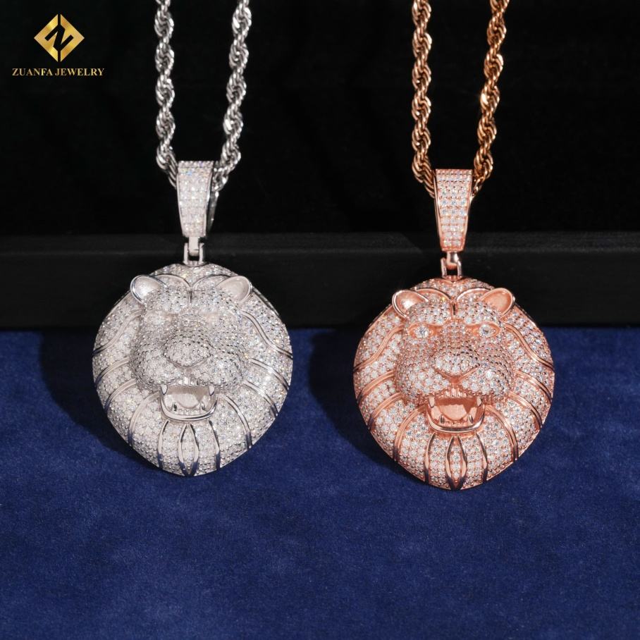 Luxury Hip Hop Jewelry Lion Head Pendant VVS Moissanite Iced Out 925 Sliver Rose Gold Plated Jewelry Charm Animal Pendant Men