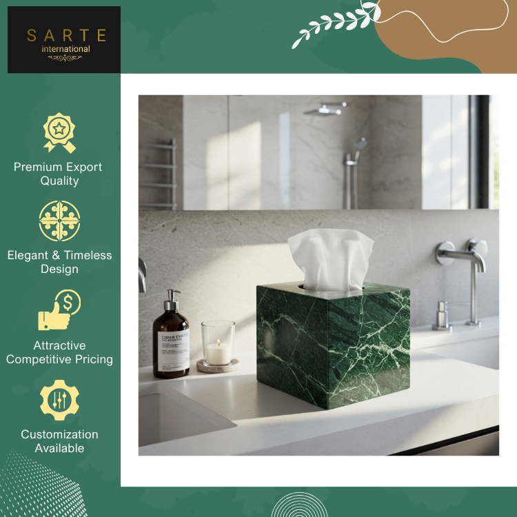 Accessoire de maison de luxe, dernier design, boîte à mouchoirs suspendue en marbre vert, faite à la main, imperméable, écologique, durable et décorative
