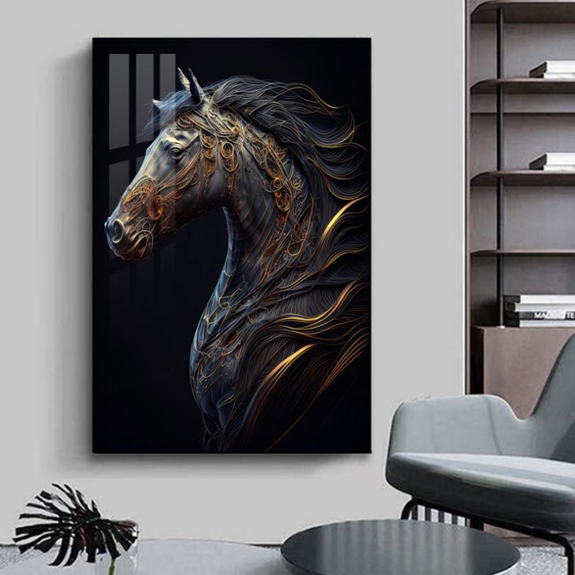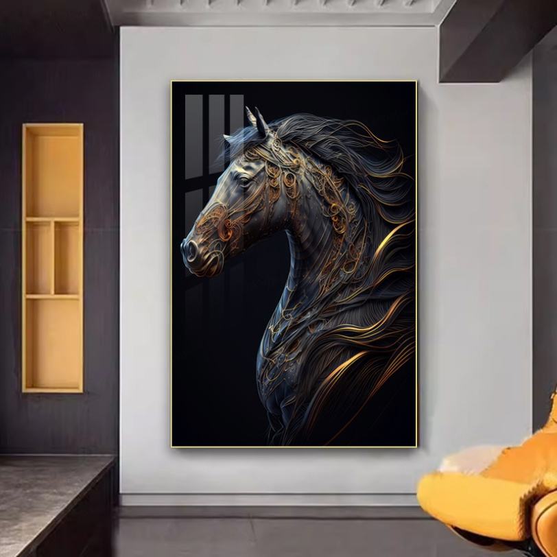 Décoration de maison de luxe, tableaux sur toile imprimés HD, peintures de chevaux en porcelaine de cristal, art mural personnalisé pour salon, fresques LED en gros