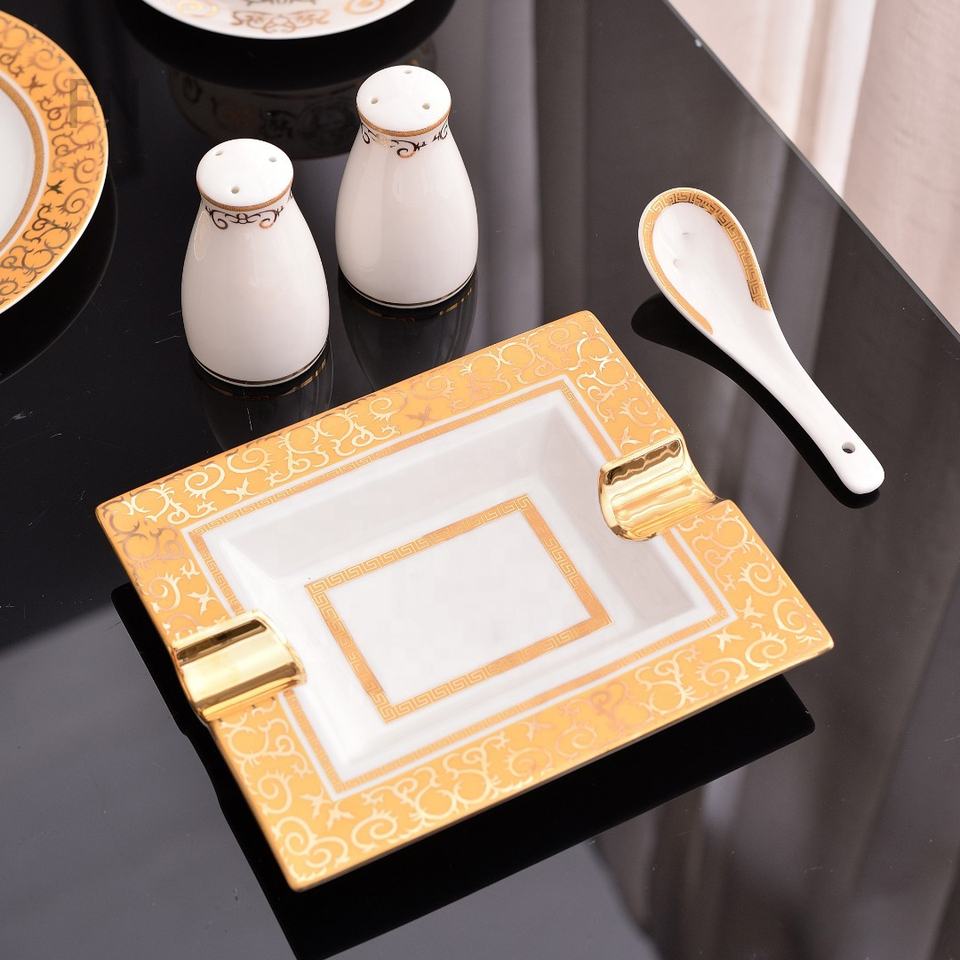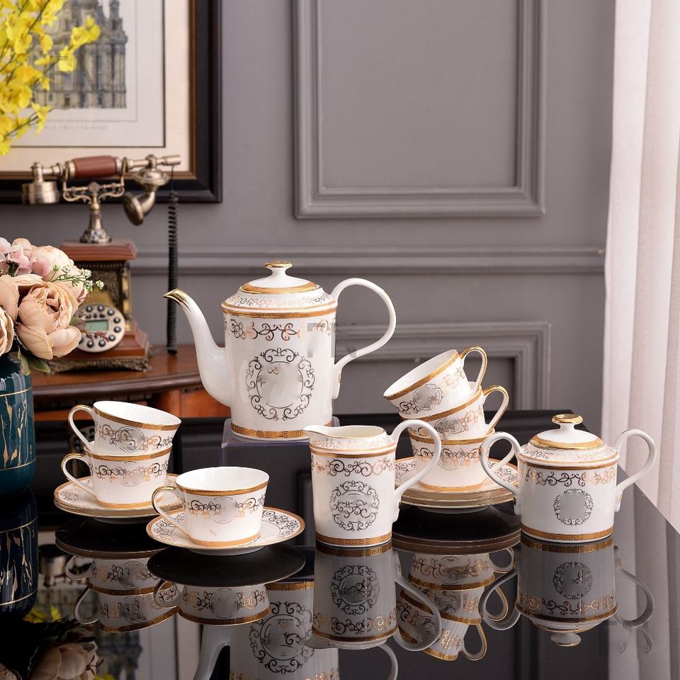 Service de table de luxe pour la maison, coffret cadeau, bordure dorée, style Europe occidentale, salon, porcelaine fine, promotionnel, 6 personnes