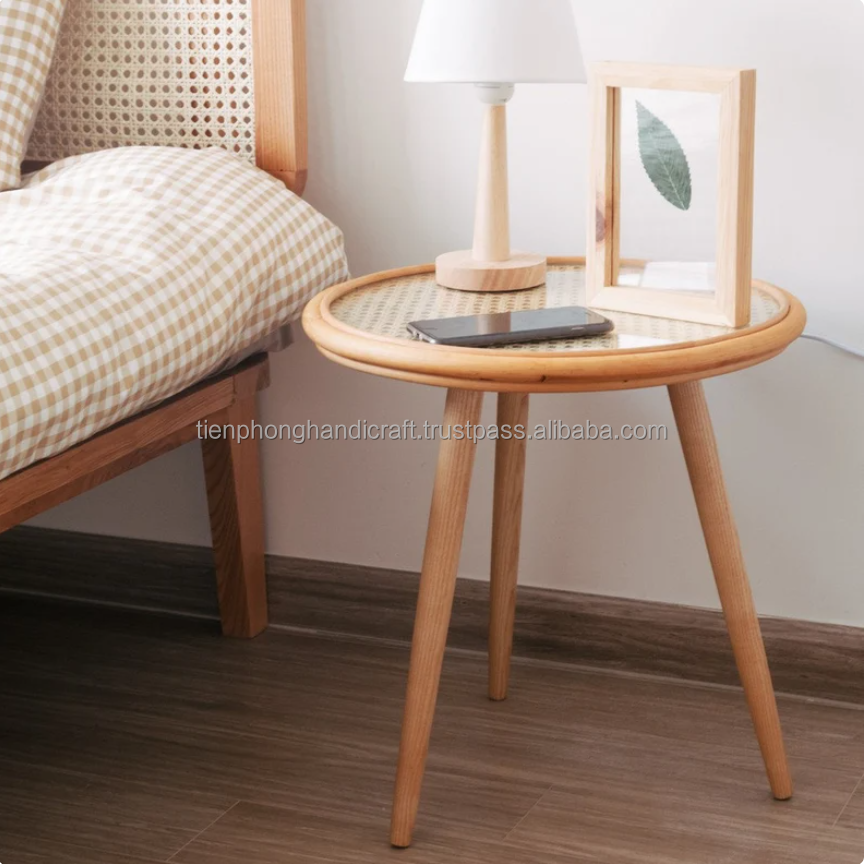 Meubles de maison de luxe, Table d'appoint ronde en rotin à deux couches, Table basse en bois massif