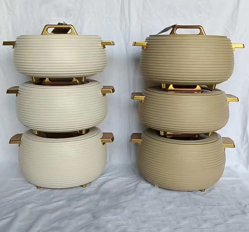 Ensemble de casseroles isothermes de luxe à texture côtelée horizontale 3L 4L 5L avec poignée pont doré pour buffet d'hôtel