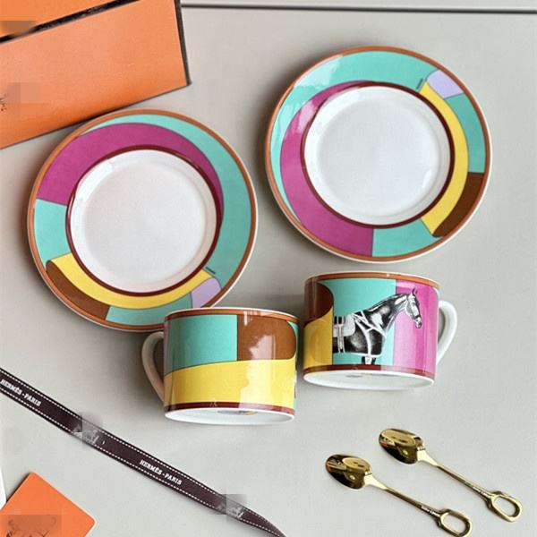Service à café en porcelaine osseuse à motif de cheval de luxe, service à thé de l'après-midi, tasse et soucoupe