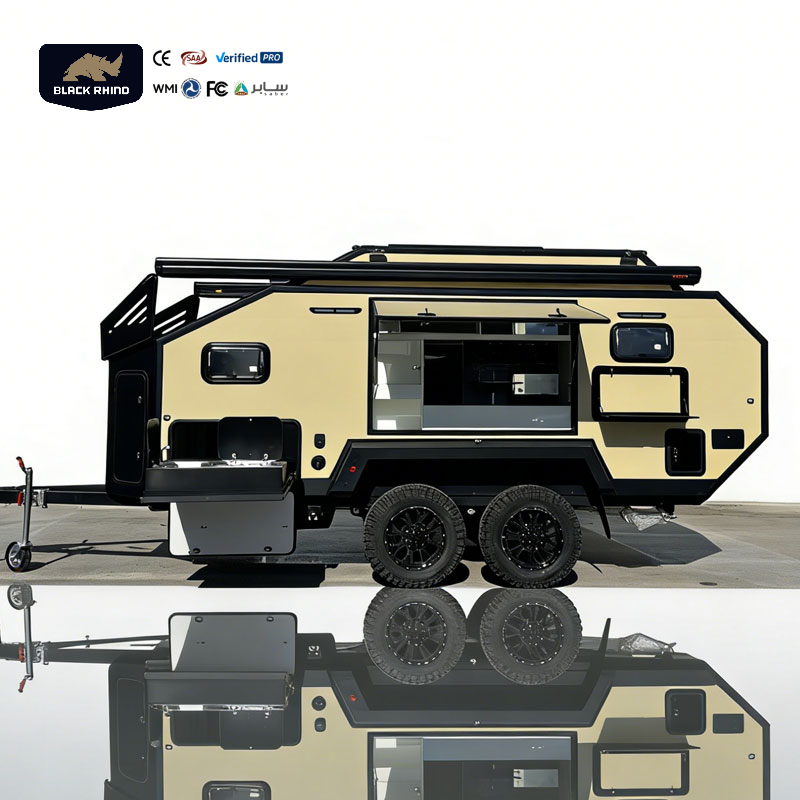 Vente flash de luxe : caravane tout-terrain hybride en aluminium, caravane de voyage pour le camping, meubles en option pour les campings