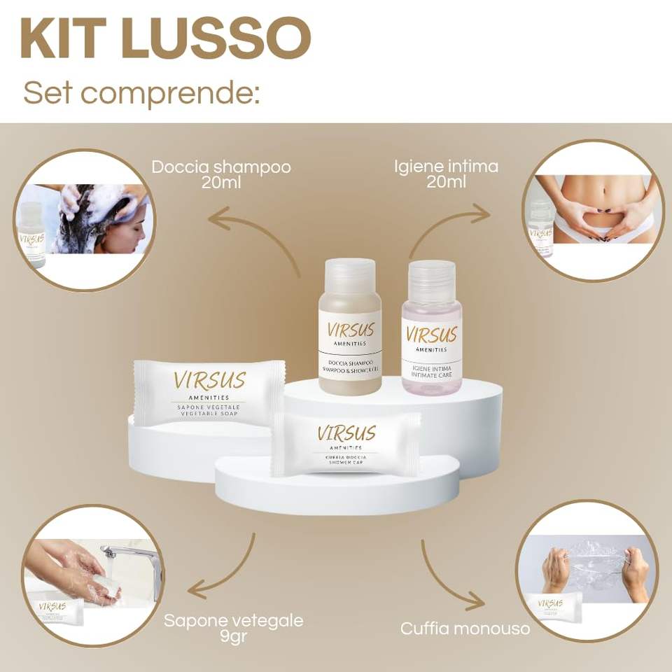 Luxury Hotel Amenities Kit 200-Piece Single-Dose Products Shampoo Soap Shower Cap for B&Bs & Agritourisms Focused on Hygiene