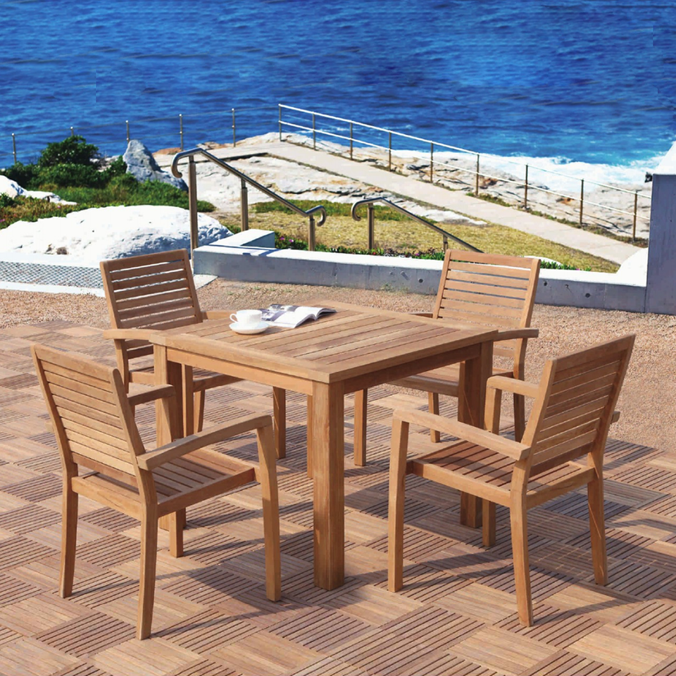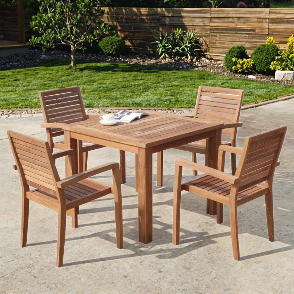 Ensemble de salle à manger d'hôtel de luxe pour 4 personnes extérieur en bois patio jardin petite table à manger meubles en teck