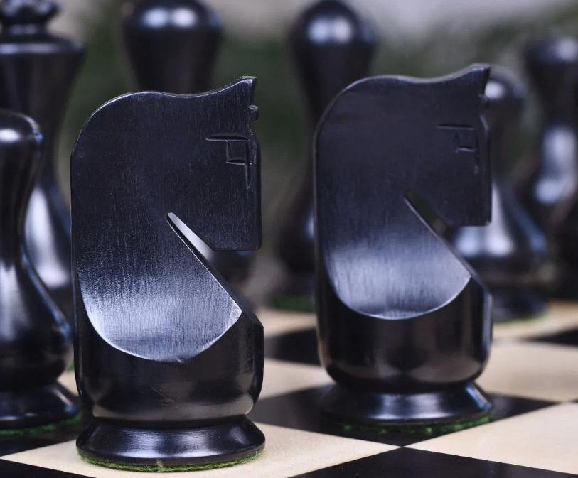 Pièces d'échecs de luxe de style sablier en bois de laurier ébénisé et en bois de laurier naturel, roi de 4,1 pouces à prix abordable