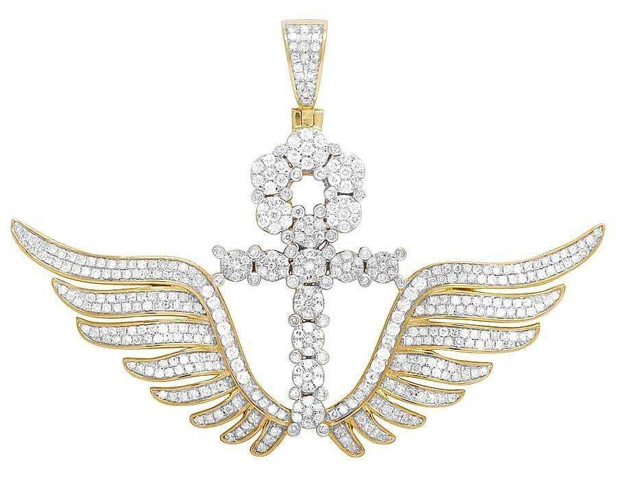 Pendentif de luxe en forme de croix avec ailes d'ange, entièrement serti de moissanite VVS, bijoux hip-hop finition or rose pour soirée