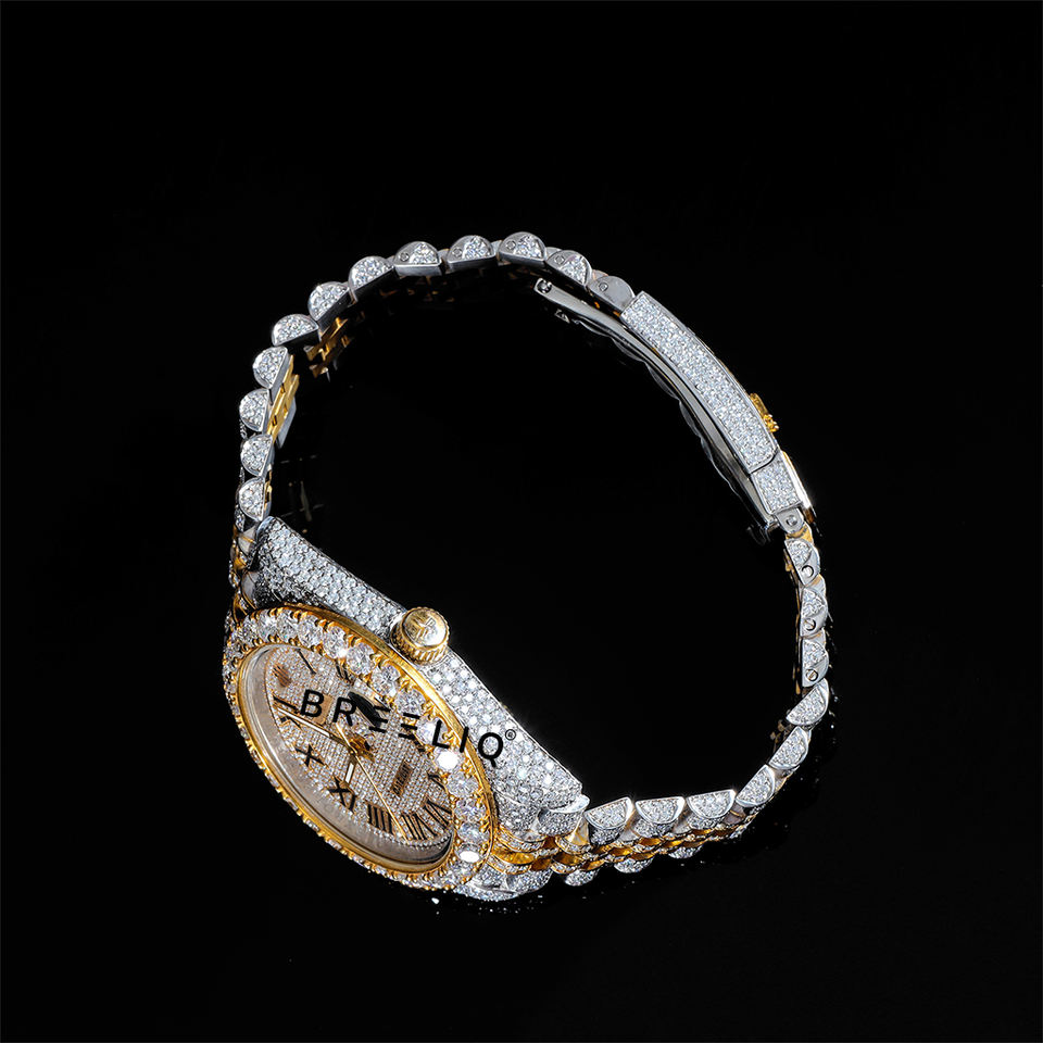 Montre automatique de luxe sertie de diamants, acier inoxydable, deux tons, or, lunette sertie de diamants, montre-bracelet pour homme, style hip-hop, affichage de la date