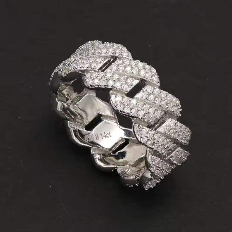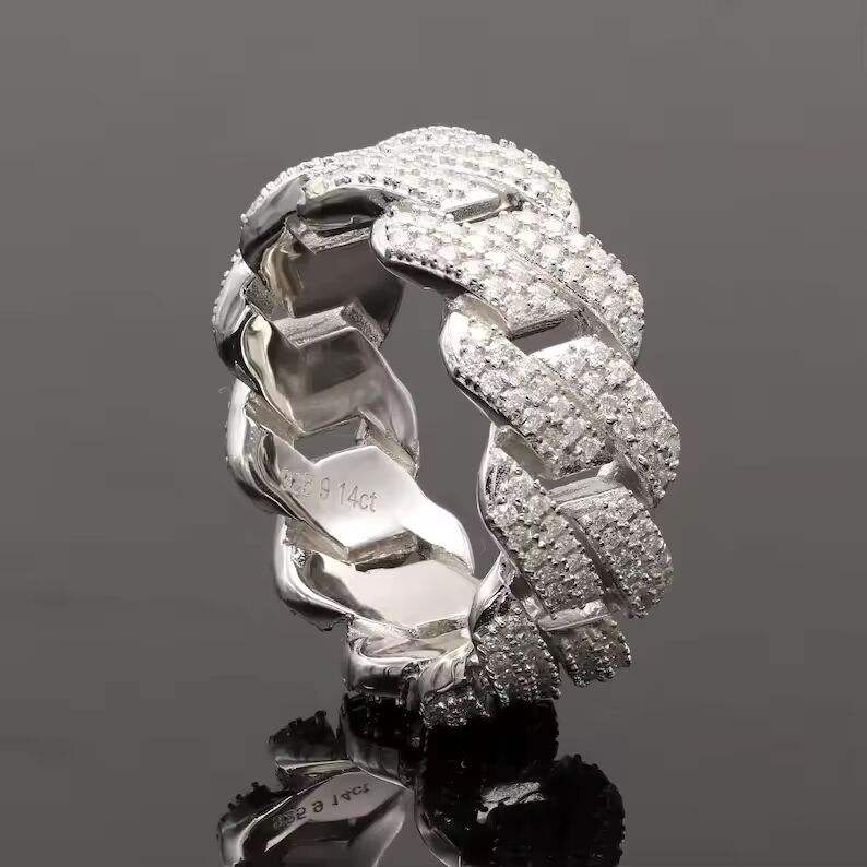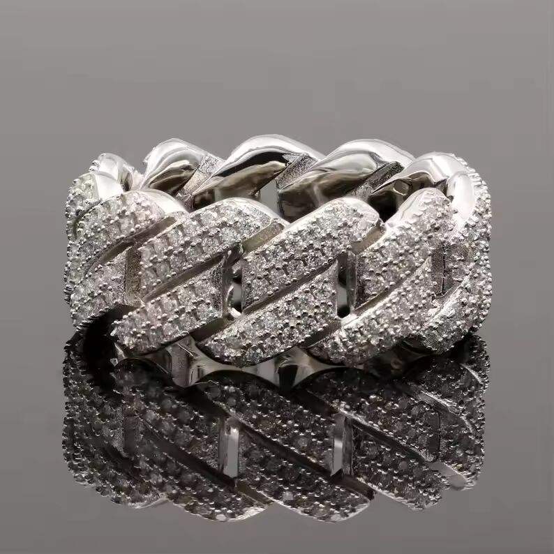 Bague unisexe de luxe style Cuban Link, plaquée argent, sertie de diamants de laboratoire et de moissanite, bijou statement hip-hop, cadeau