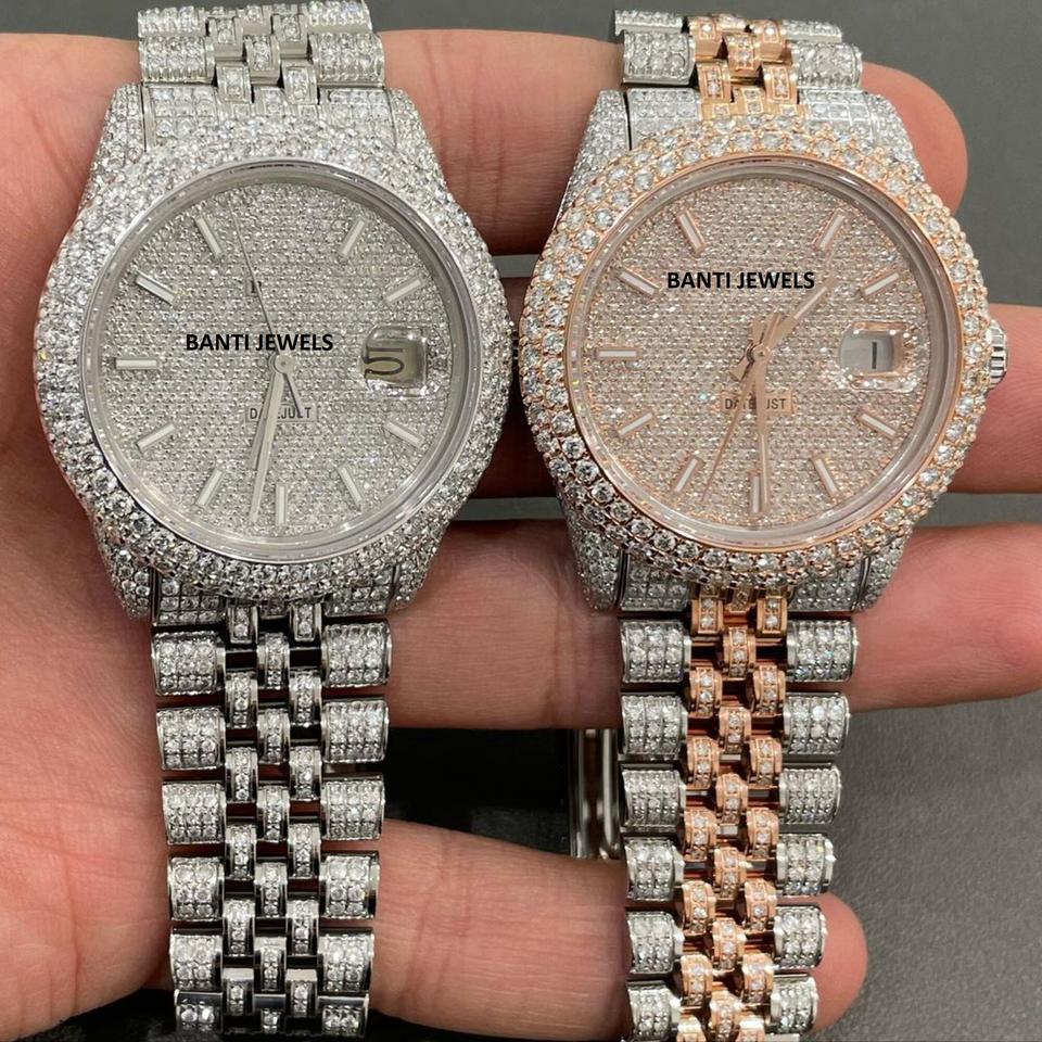 Luxury Iced Out Moissanite Watch with VVS Shine Hip Hop Jewellery Stainless Steel Diamond Bustdown Wrist Watch
