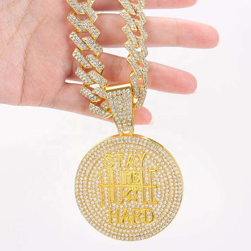 Pendentif médaillon en moissanite de luxe, serti de pierres, avec inscription « STAY HUMBLE HUSTLE HARD », or, bijoux de style hip-hop