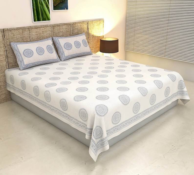 Ensemble de draps en coton imprimé bloc de main indien de luxe fait à la main Style Simple literie avec taies d'oreiller et couette en gros Lot