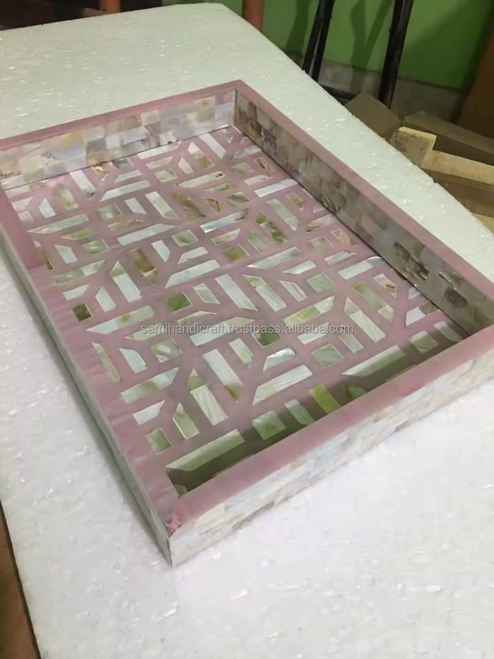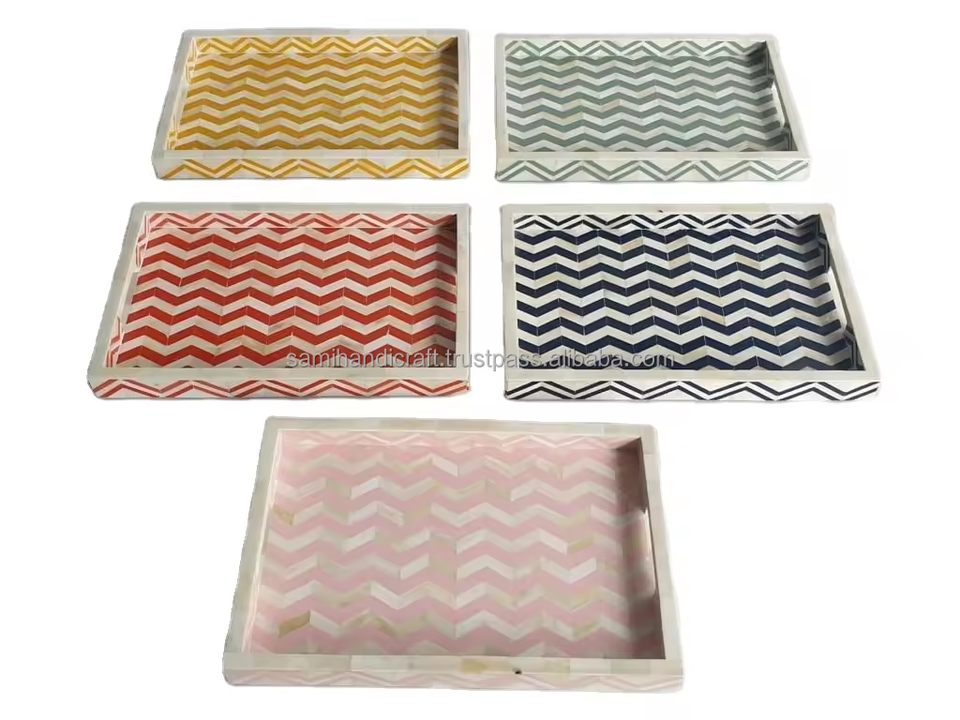 Plateau de service indien de luxe fait main en résine osseuse incrustée, taille et couleur personnalisables, multi-usages pour hôtels, restaurants, décoration intérieure, dernière nouveauté