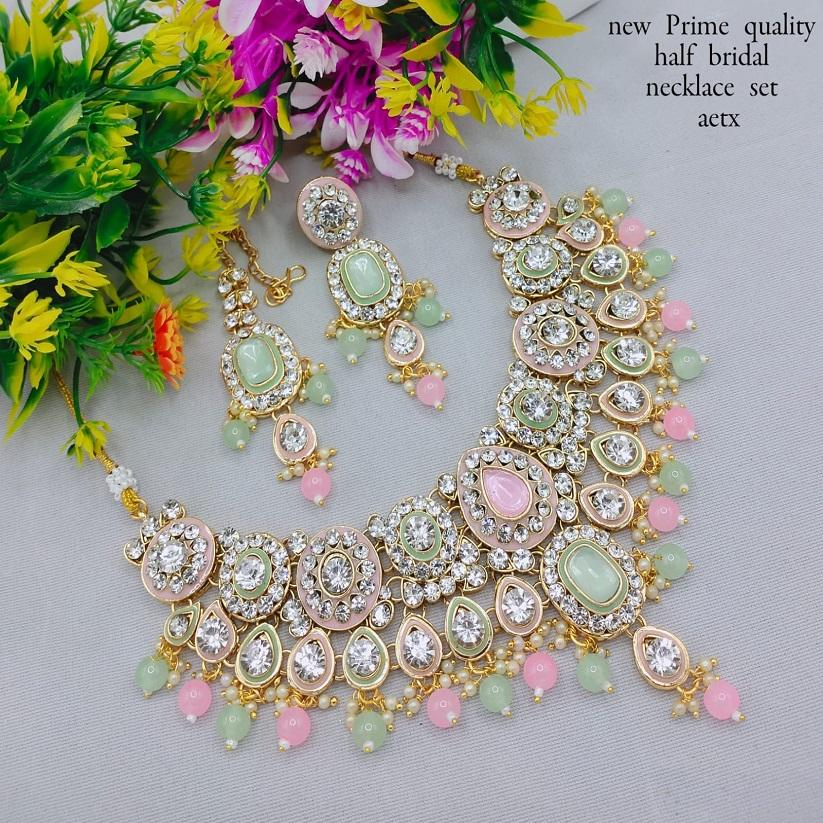 Products Name:Fancy Collection Gold Plated Kundan & Pearl Necklace Set