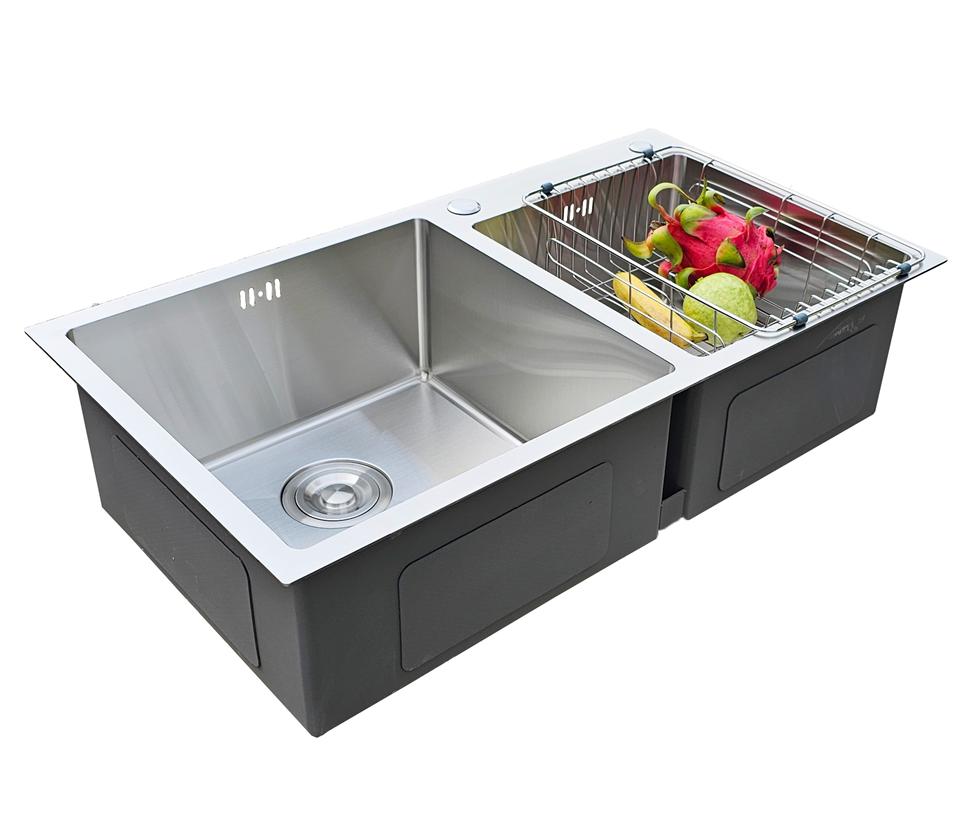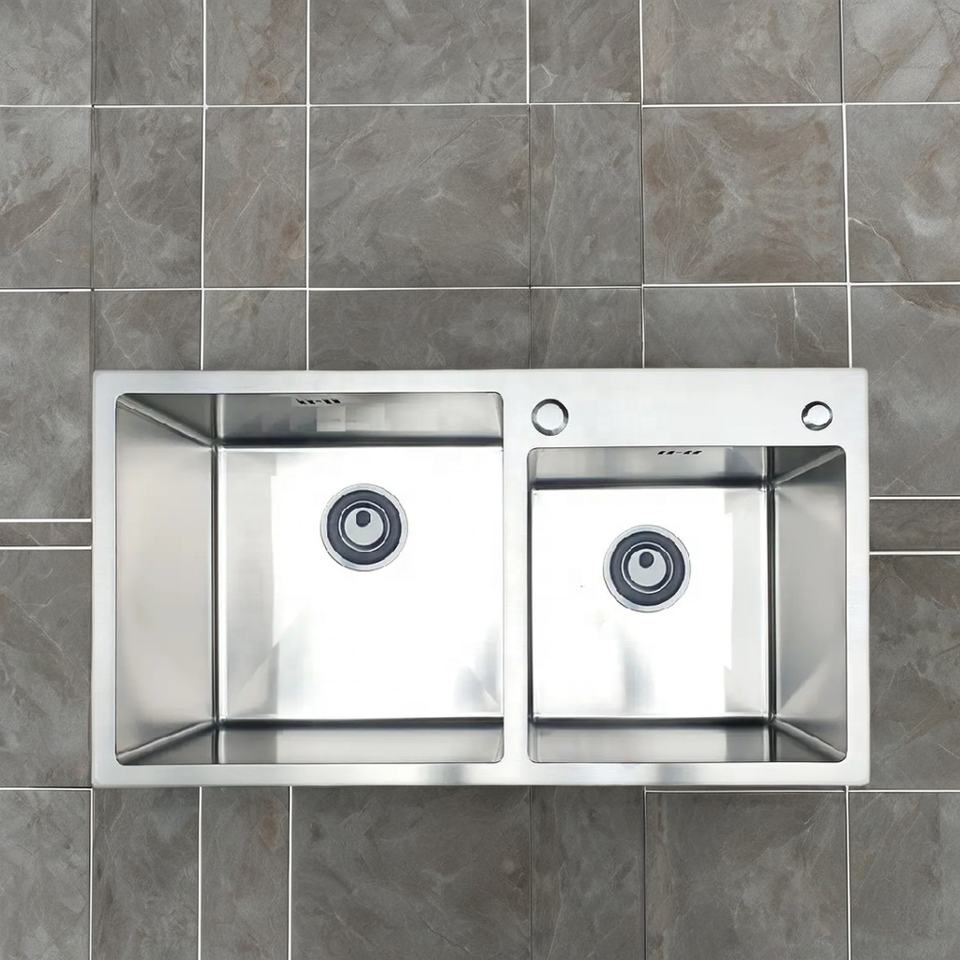 Évier de cuisine double en acier inoxydable 304 de luxe avec surface brossée, prix de gros direct usine du Vietnam