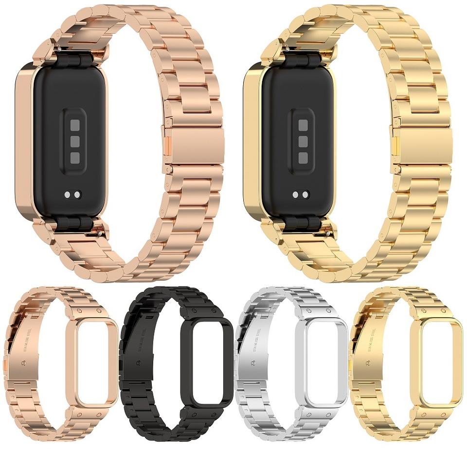 Bracelet de montre intelligent intégré de luxe pour Mi Band 3, bracelet de montre en métal à trois maillons pour Mi Band 9 Active, bracelet de montre en acier inoxydable