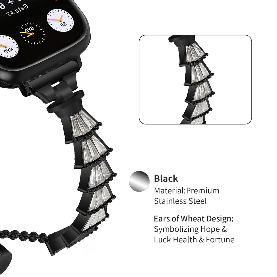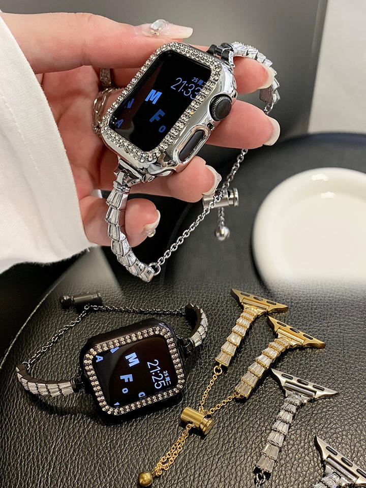 Bracelet de montre en acier inoxydable pour femme, design coquille de diamant, bijoux de luxe, pour Apple Watch 8 7 6 5 4