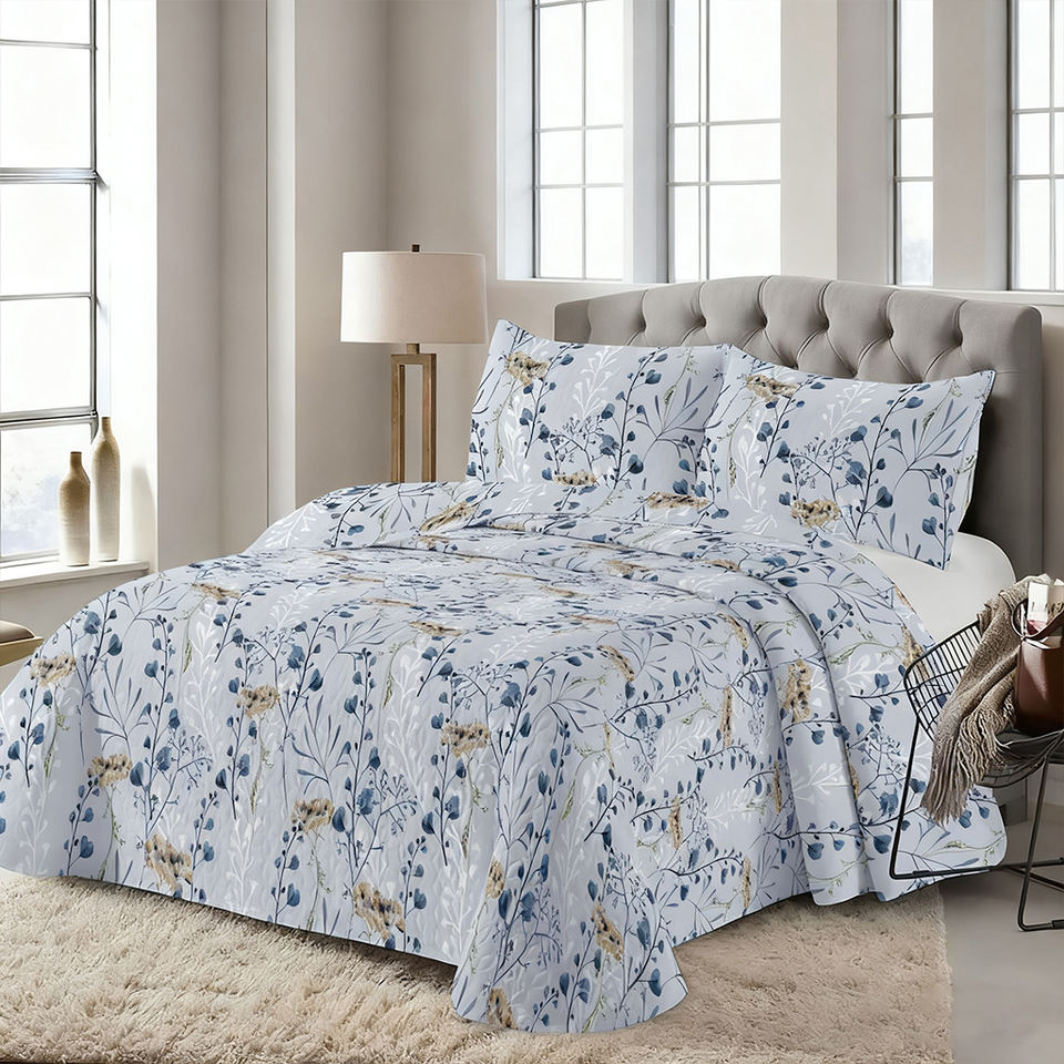 Ensemble de couette en polyester imprimé végétal de luxe, taille king, respirant, léger, couleur unie, toutes saisons