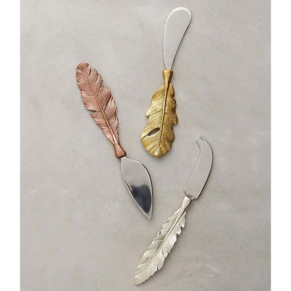 Ustensiles de cuisine de luxe Trancheuse à fromage polie miroir argentée avec nouvelle poignée en or rose au look de plumes