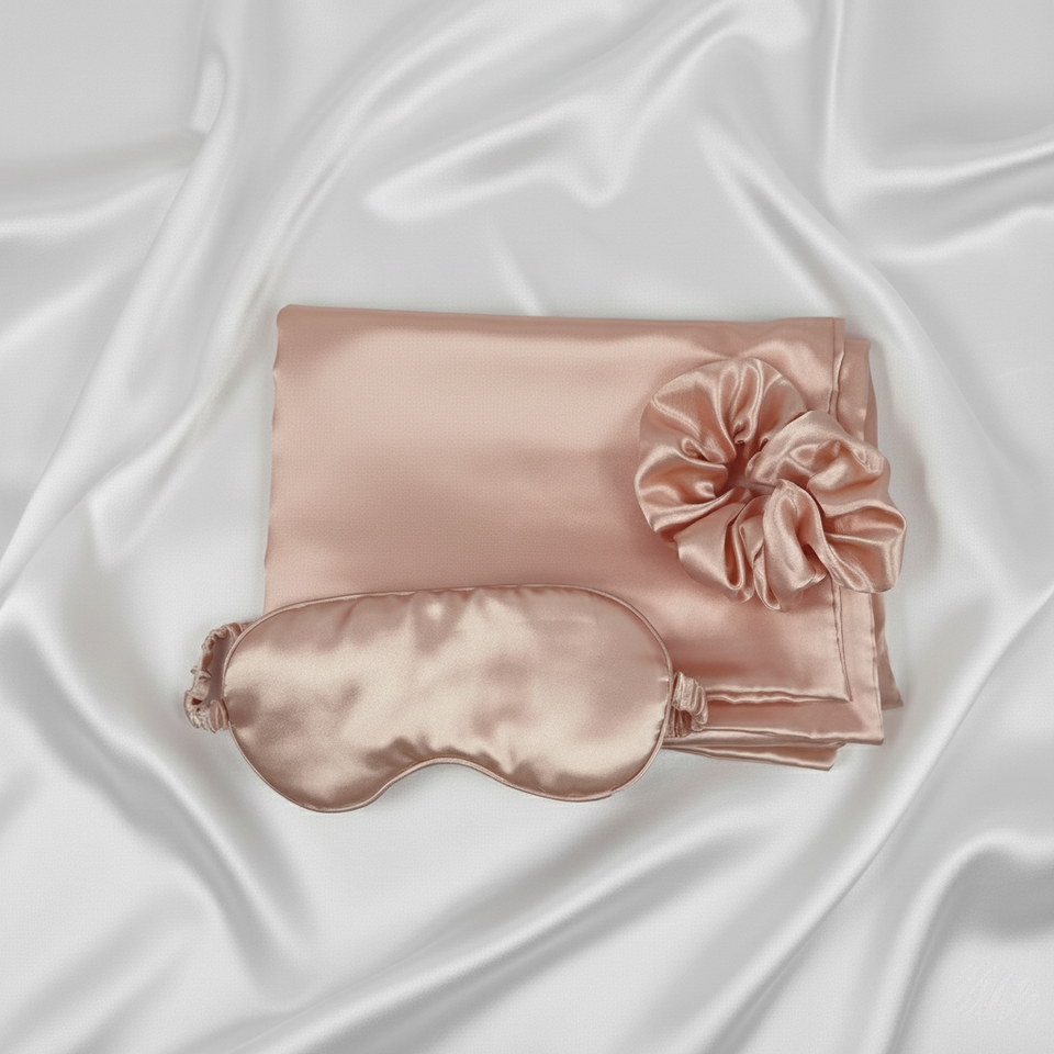 Ensemble de sommeil en soie 100% tricotée de luxe avec taie d'oreiller et masque pour les yeux