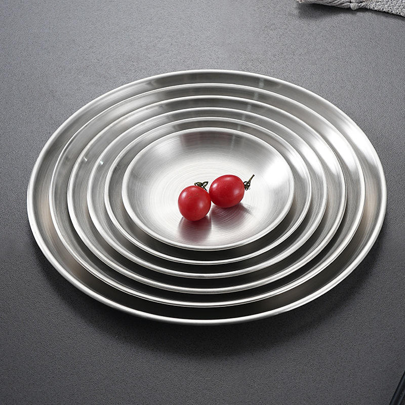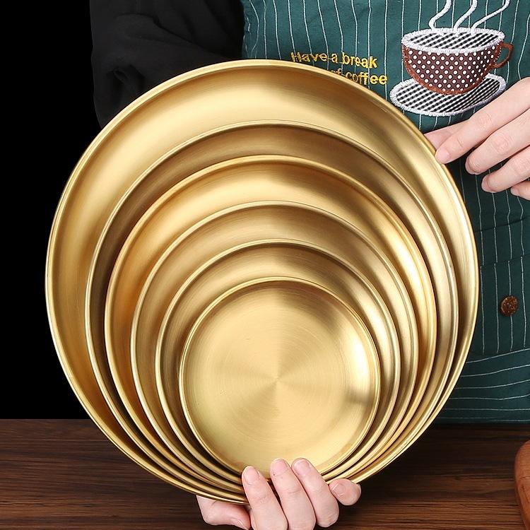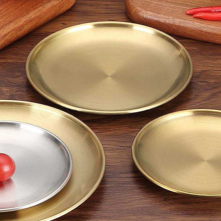 Luxury Korean Style BBQ 14cm 17cm Chargers Plates Metal Tableware Food Round Serving Tray Wedding Decorative