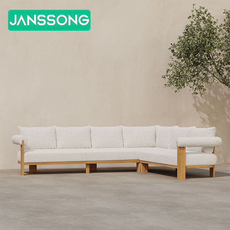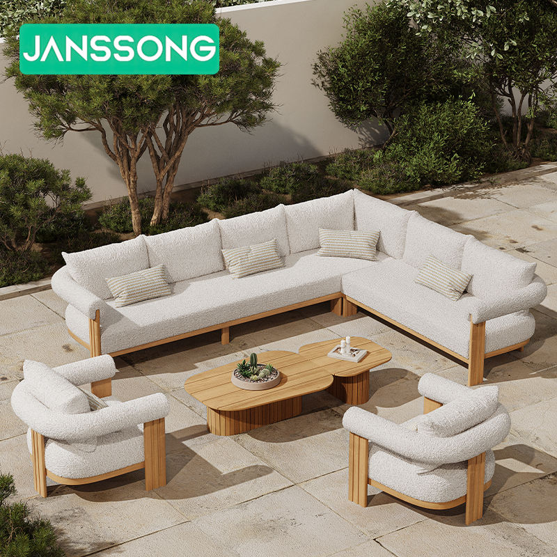 Luxury L Shape Outdoor Sofa Wooden Garden Sets Patio Outdoor Furniture Villa Resort Poolside Sofa Hotel Garden Teak Couches Set