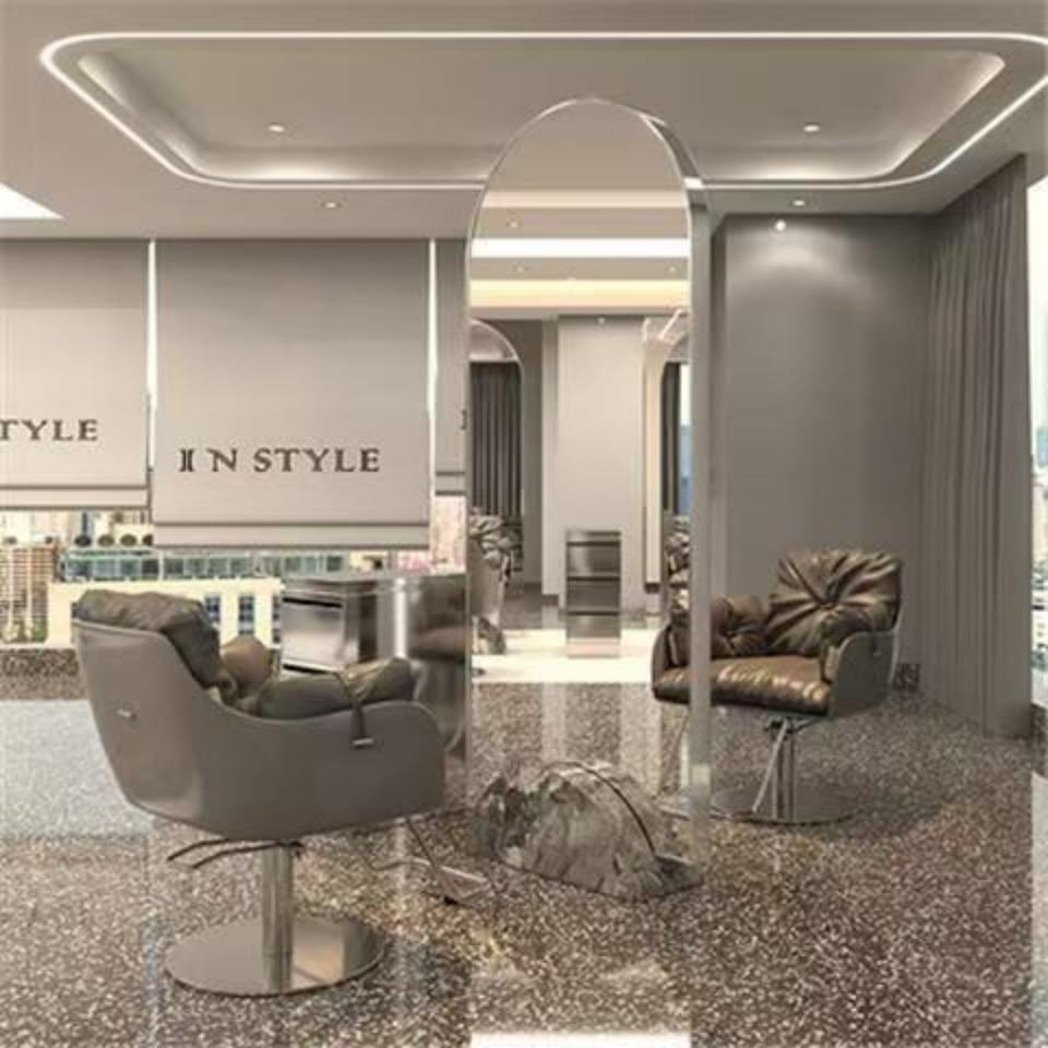 Miroir de sol LED de luxe avec armoire en acier inoxydable, mobilier de salon de coiffure et de beauté pour salle de bain, hôtel, centre commercial, supermarché, pour barbiers