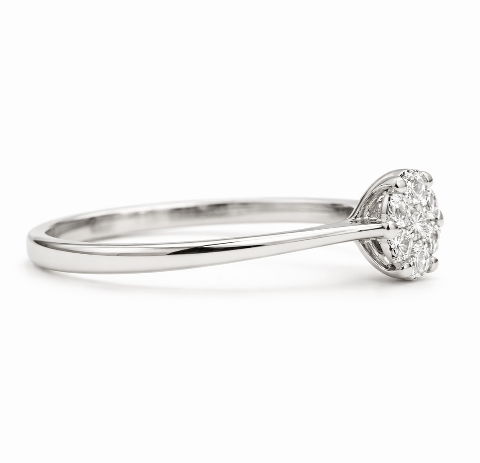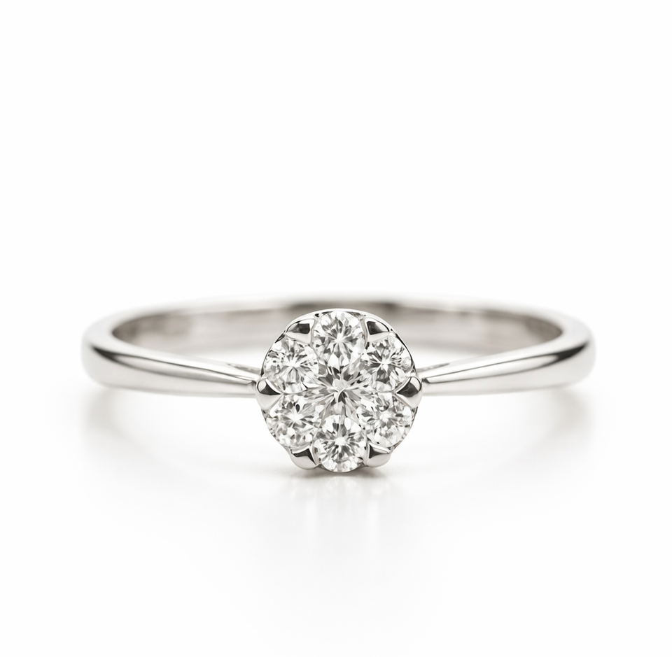 Bague de fiançailles de luxe en or blanc 10K 14K avec diamant de laboratoire taille ronde, design floral, sertissage illusion