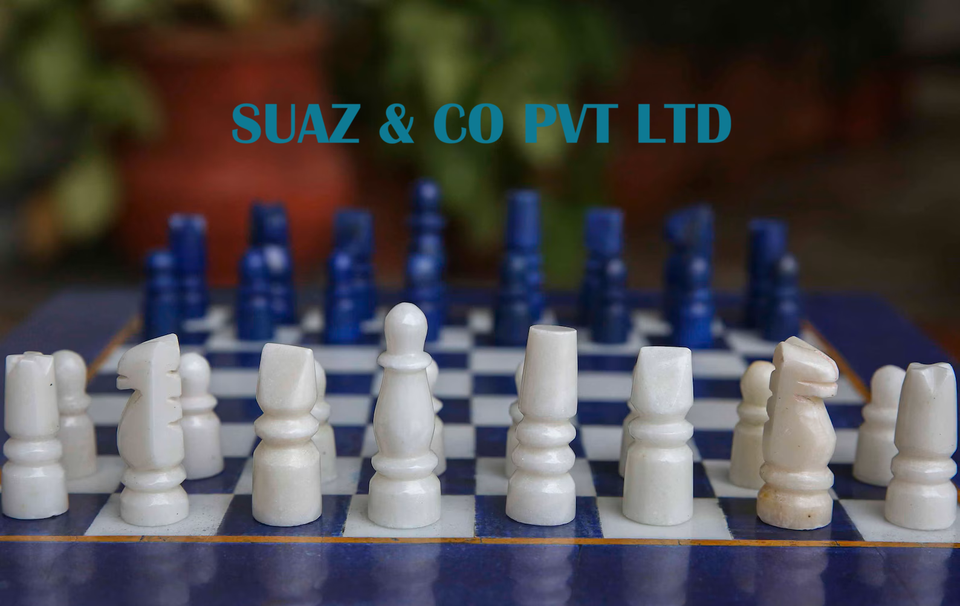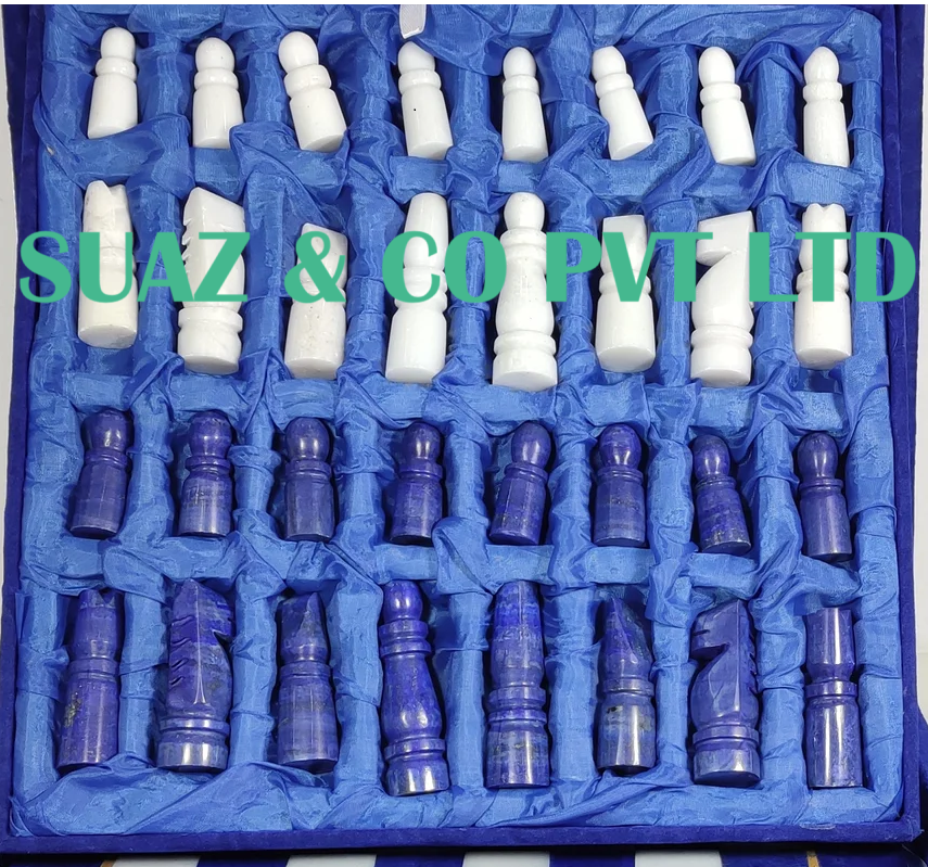 Chess Pieces::Hand-Carved Stone Figures (Lapis Lazuli & White Marble)