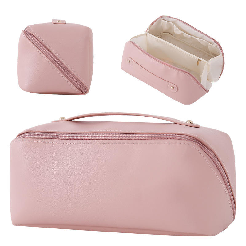 Sac de maquillage de luxe en cuir PU grande capacité, trousse de toilette portable avec plusieurs compartiments, doublure imperméable, parfait
