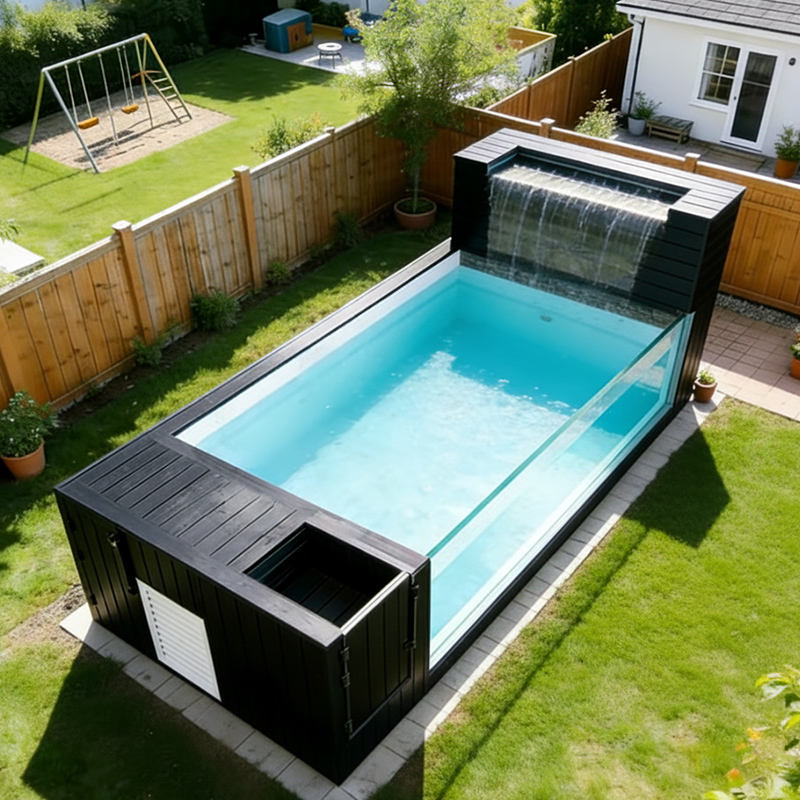 Piscine hors sol de luxe en fibre de verre, grande piscine préfabriquée en conteneur pour adultes et enfants, prête à l'emploi en extérieur