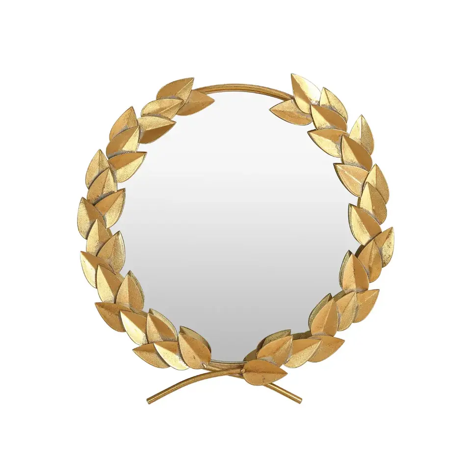Miroir mural rond de luxe en forme de feuille pour cadeau de mariage, miroir mural décoratif doré en gros pour salon et hôtels