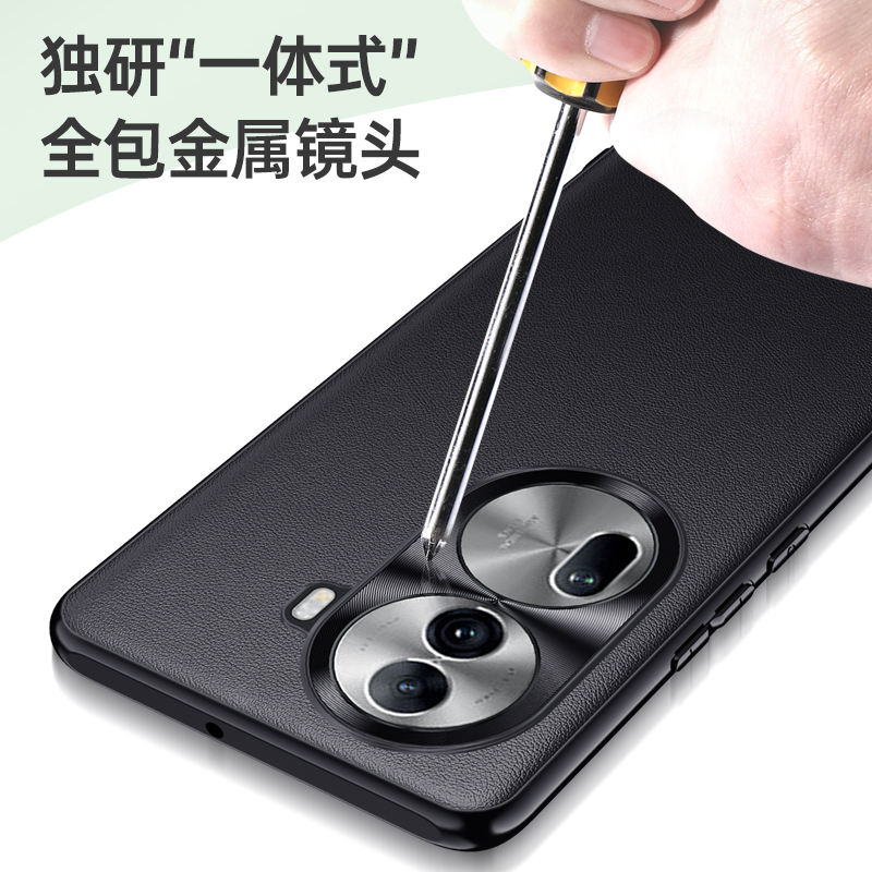 Étui en cuir de luxe, coque de téléphone en TPU souple avec pare-chocs en métal, coque arrière en cuir PU pour OPPO Reno 11 Pro