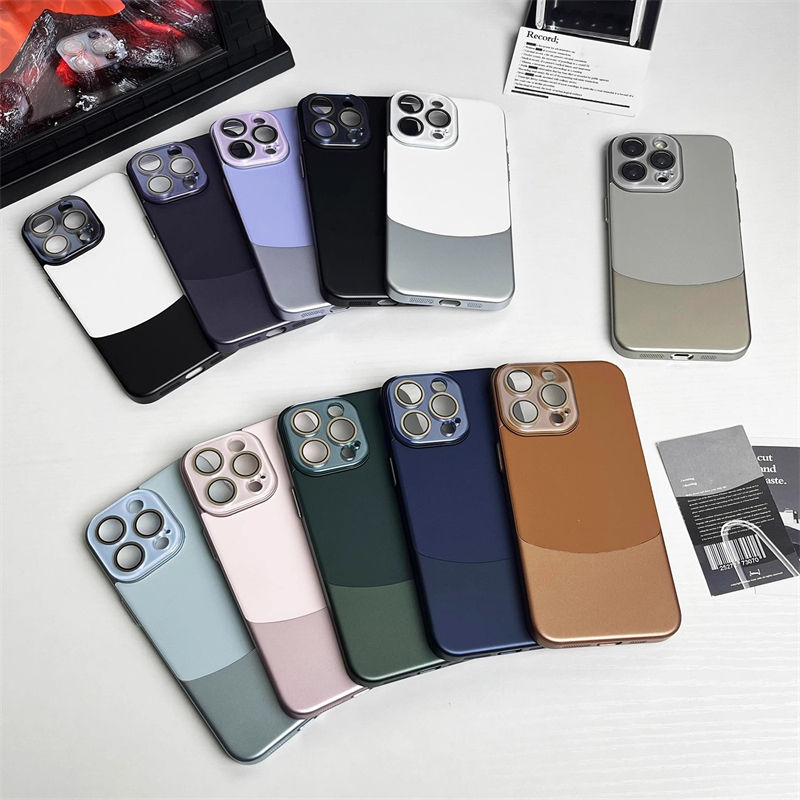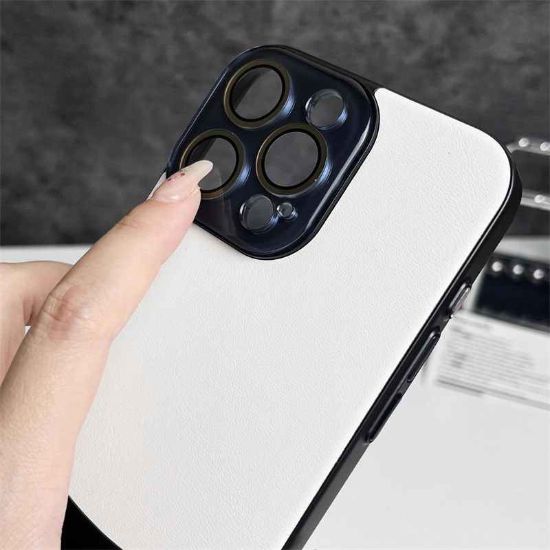 Étui de téléphone de protection de lentille en verre en cuir de luxe pour iPhone 16 15 14 13 12 11 Pro Max PC Back Mobile Cover Funda Coque Shell