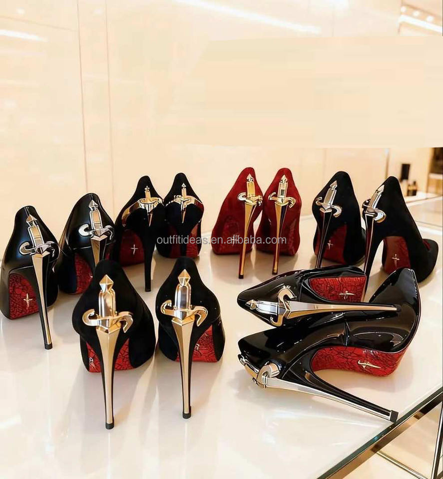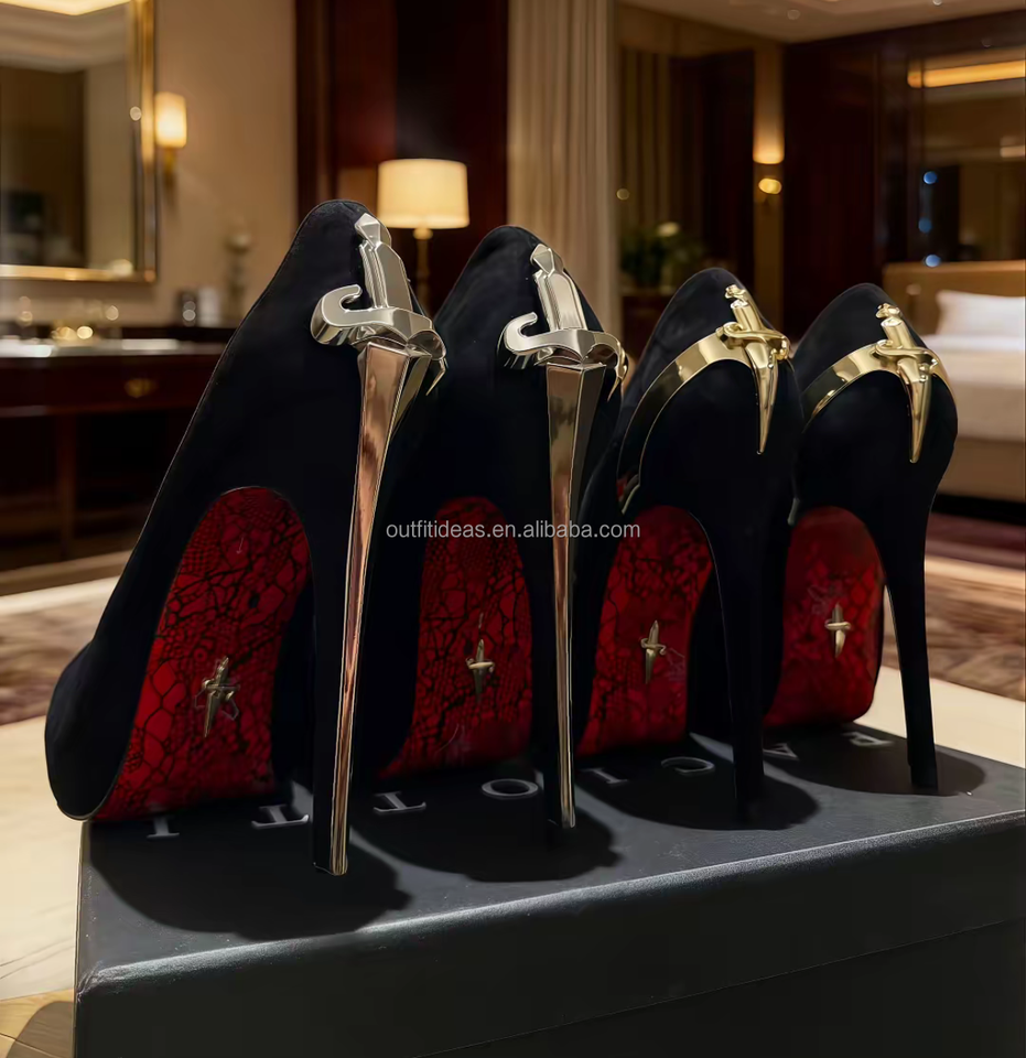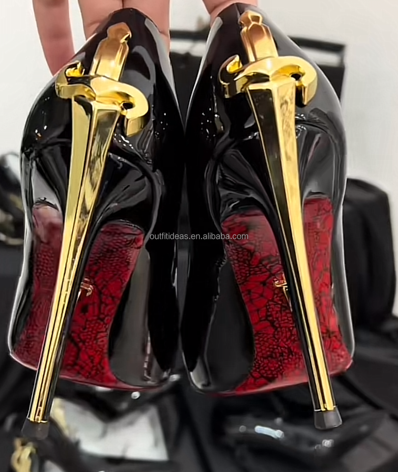 Escarpins Luxe en Cuir avec Logo, Qualité Supérieure, Design Or, Talons Aiguilles Pointus Noirs, Modèle Cesare Paciot