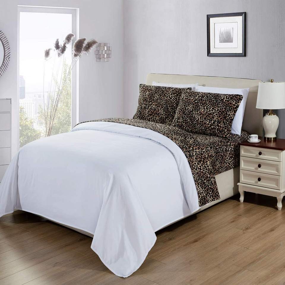 Ensemble de taies d'oreiller en peluche de velours léopard de luxe Ensemble de draps en micro polaire extra doux pour l'hiver