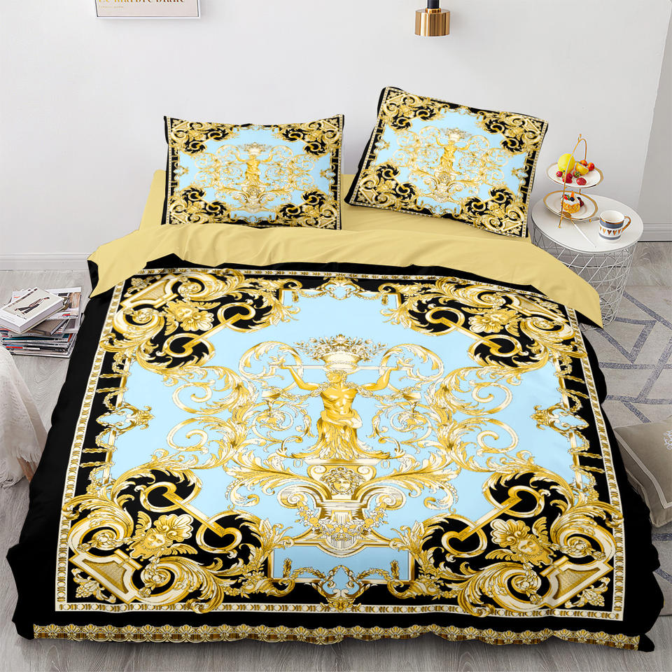 Luxury Lifestyle Bedding Set, Black & Gold Baroque Floral Bed Linen, Premium Duvet Cover with Intricate Design