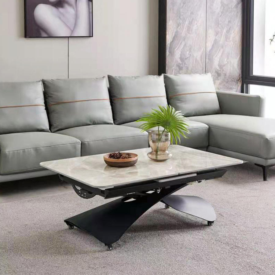 Table à manger rectangulaire extensible en céramique nordique de luxe avec roulettes