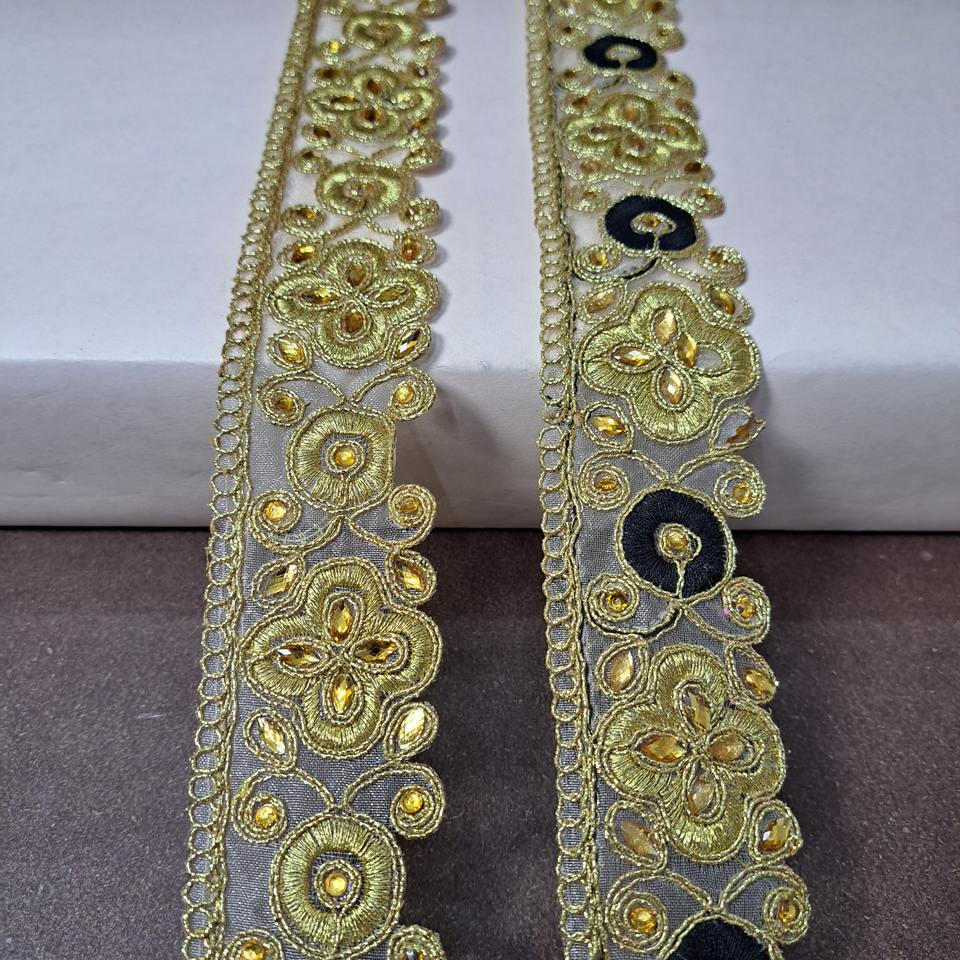 Dentelle brodée en sequins de polyester de luxe, longue durée, pour la décoration de robes de mariée, de sarees et de blouses, provenant d'un fournisseur indien