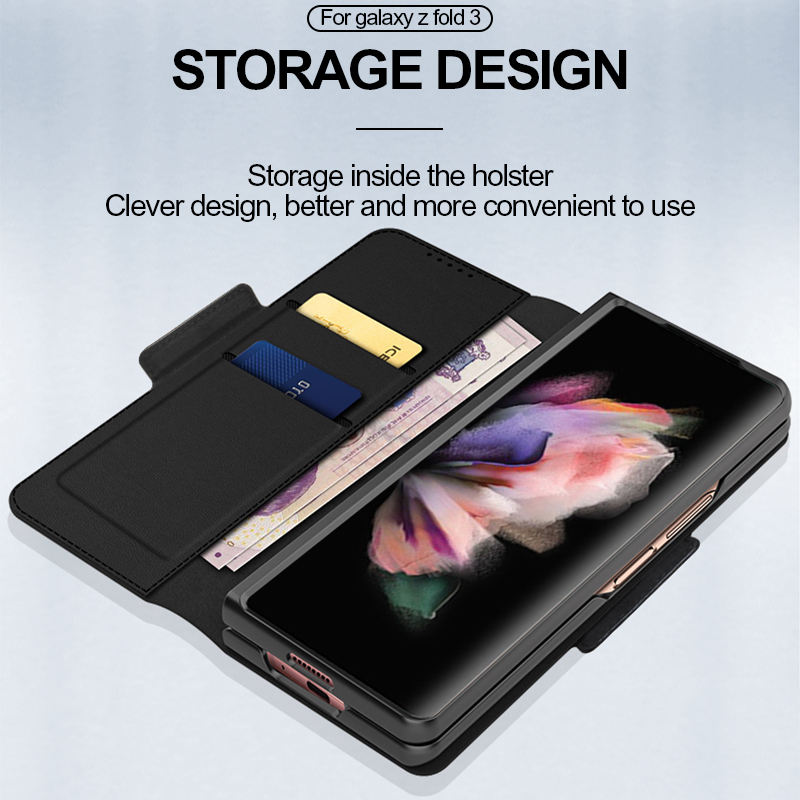 Étui en cuir PU à fente magnétique de luxe pour Samsung Galaxy Z Fold 3 5G étui de téléphone portable housse de protection arrière tout compris
