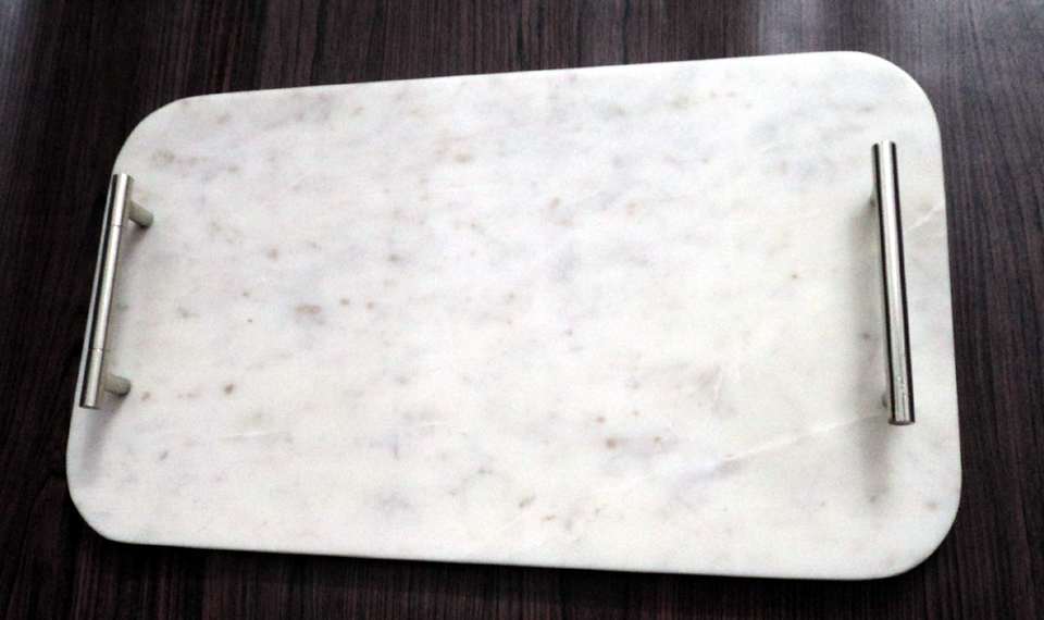 Luxury Marble Cutting Board With Stainless Steel Grips Ideal For Daily Kitchen Prep Vegetable Chopping And Serving Use