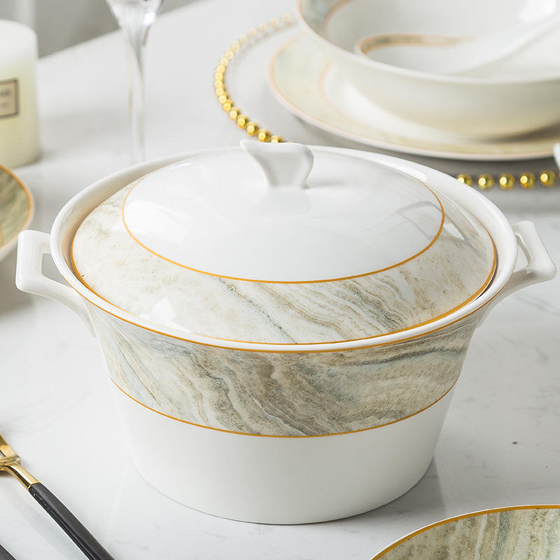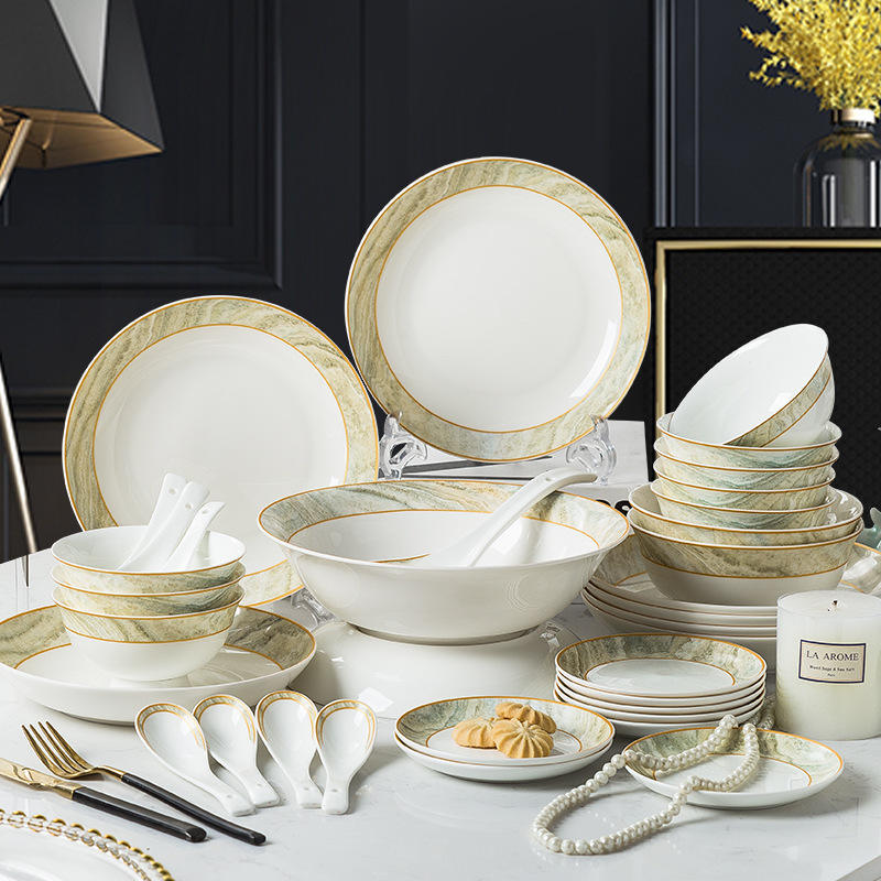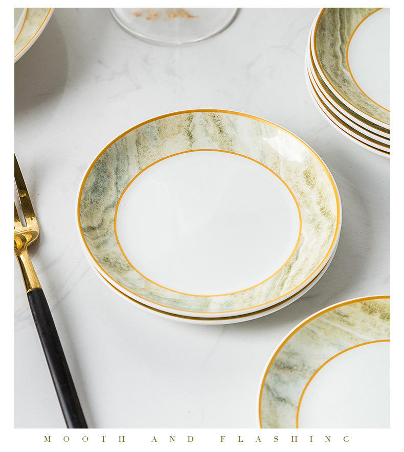 Luxury Marble European Style Ceramic Tableware Set Lightweight Dinnerware With Golden Edge Suit for Household Use