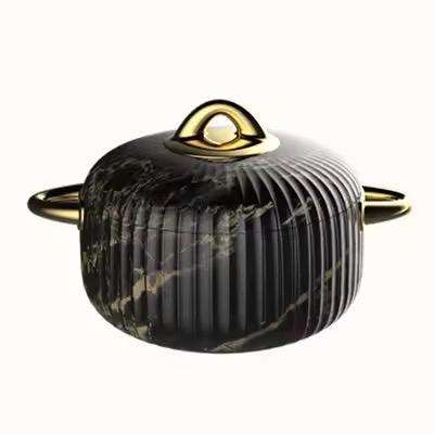 Casserole en acier inoxydable à motif marbré de luxe avec couvercle, pot de cuisson moderne pour restaurant, hôtel, maison