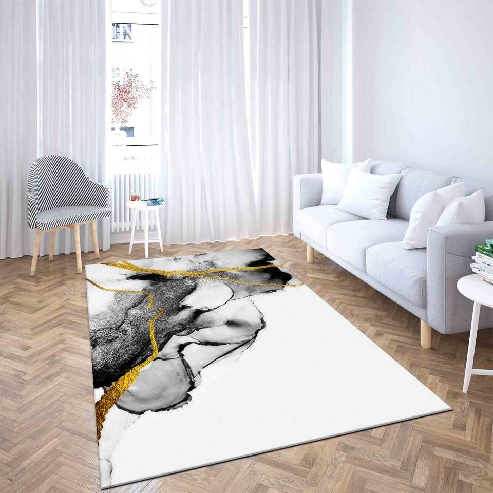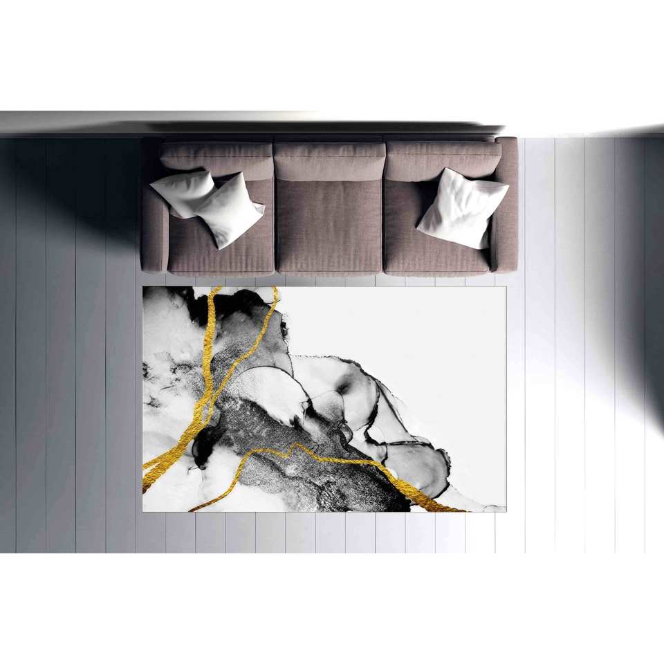 Tapis en marbre de luxe : noir, blanc et or, tapis antidérapant, tapis doux non tissé