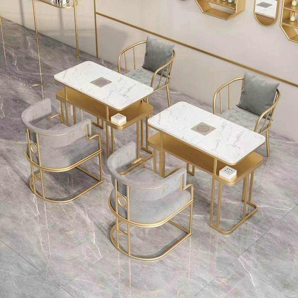 Table de manucure de luxe avec plateau en marbre et collecteur de poussière, design moderne pour atelier de technicien en ongles, en vente pour un usage domestique et en salon