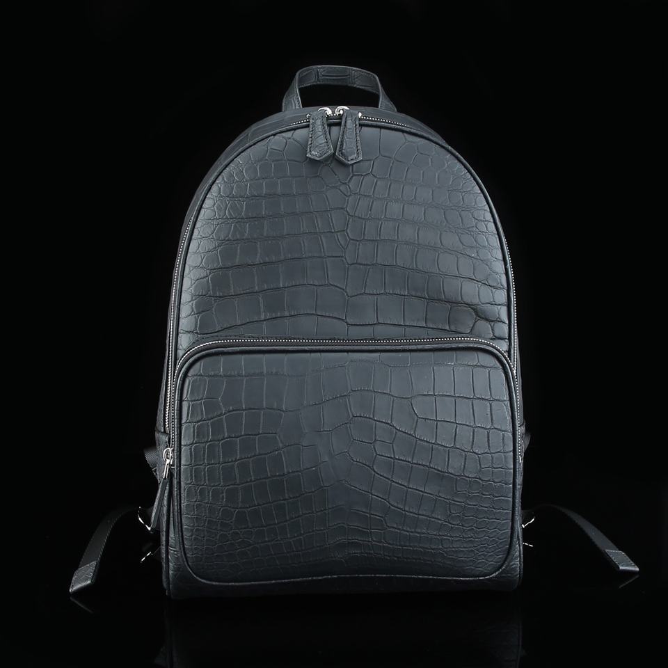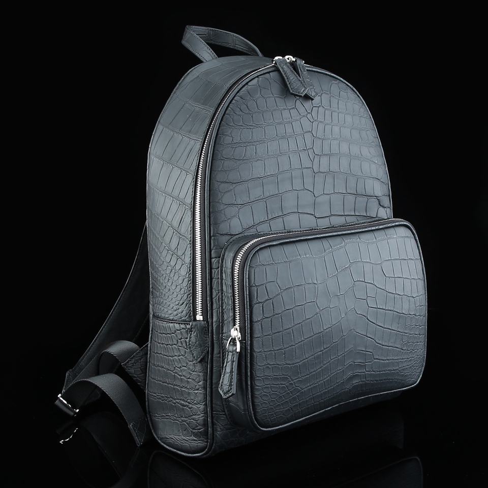 Sac à dos en cuir d'alligator mat de luxe pour hommes - Sac à dos artisanal en cuir de ventre de crocodile teint à la main
