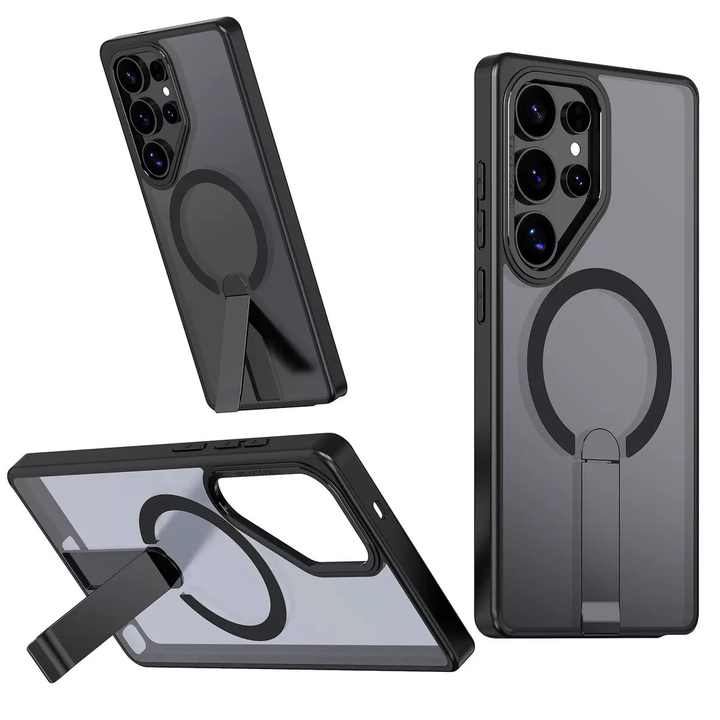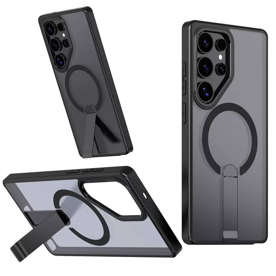 Étui de protection antichute magnétique mat de luxe avec support dissimulé pour S26Ultra S25 S24 S25edge, coque de téléphone portable antichoc