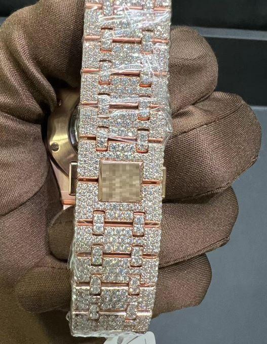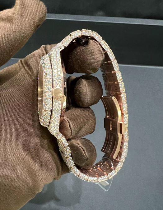 Montre automatique de luxe mécanique moderne bicolore or rose véritable VVS Moissanite lunette diamantée bracelet en acier inoxydable cristal